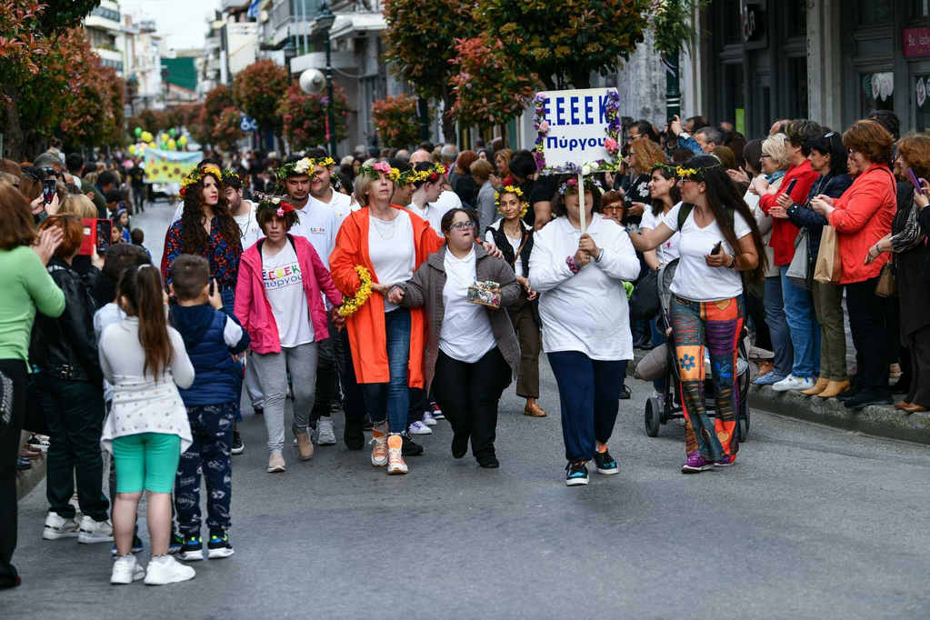 Η μεγάλη γιορτή της Άνοιξης και των λουλουδιών ξεκίνησε με την φαντασμαγορική παρέλαση, την οποία «άνοιξε» η Φιλαρμονική Ορχήστρα Γαστούνης με υπέροχες μελωδίες. Τη σκυτάλη πήραν τα ξεχωριστά παιδιά των ΚΔΑΠμεΑ «Ηλίανθος» και «Διάπλασις» και του ΕΕΕΕΚ Πύργου για να ακολουθήσει το Άρμα του Δήμου Πύργου.