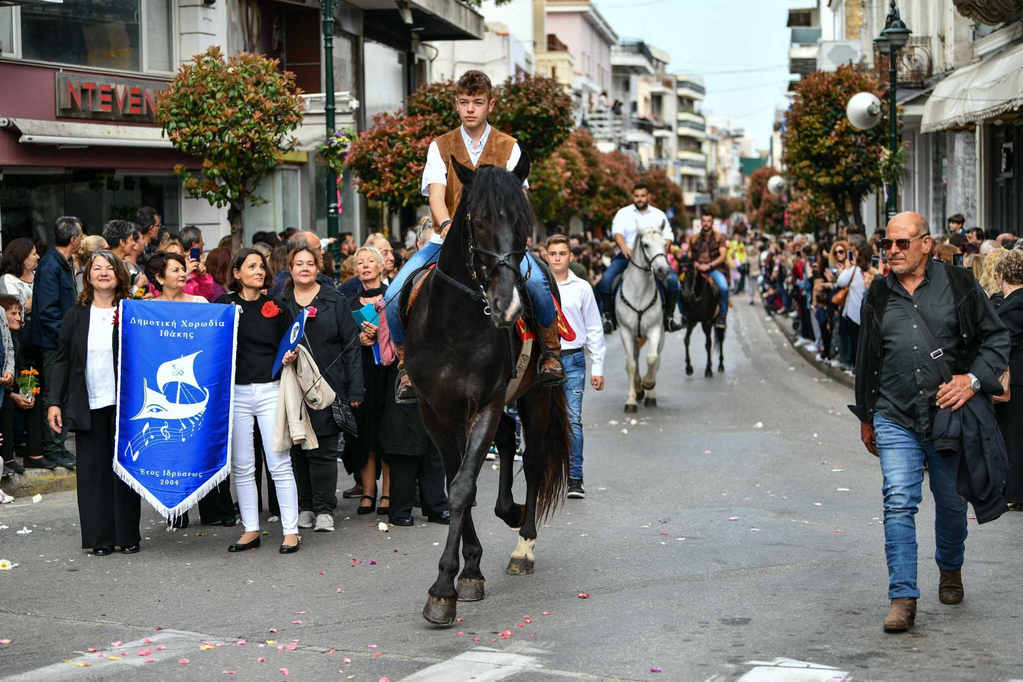 Μετά το τέλος της παρέλασης η γιορτή μεταφέρθηκε στην κεντρική πλατεία του Πύργου. Εκεί, η Χορωδία της Ιθάκης, στο πλαίσιο της Αδελφοποίησης των δύο Δήμων και της ανταλλαγής πολιτιστικών δράσεων, ερμήνευσε αγαπημένες καντάδες μιας άλλης εποχής. Τη σκυτάλη πήραν τα χορευτικά συγκροτήματα της Δήμητρας Μπέρτσου, της σχολής «Ρυθμός», του 3ου ΓΕΛ Πύργου και του συλλόγου Γορτυνίων.