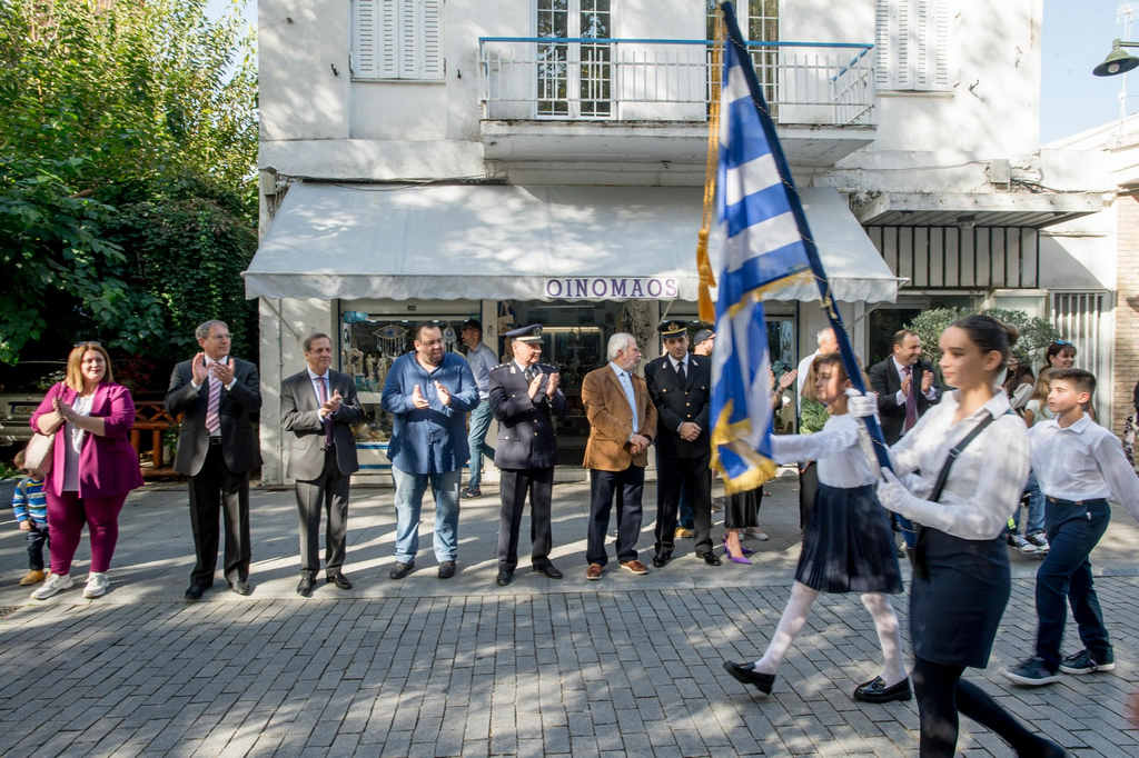Στεφάνια κατατέθηκαν από τον Δήμαρχο κ. Γιώργο Γεωργιόπουλο, τον Πρόεδρο της Κοινότητας κ. Παναγιώτη Μαντά, τον διοικητή του Αστυνομικού Τμήματος κ. Νίκο Αργυρόπουλο, τον διοικητή του Πυροσβεστικού Κλιμακίου κ. Ηλία Δουζένη, τον εκπρόσωπο του Εμπορικού Συλλόγου κ. Δημήτρη Παπαϊωάννου, από αθλητές του «Ολυμπιονίκη» και από μαθητές του Νηπιαγωγείου, Δημοτικού και Γυμνασίου Αρχαίας Ολυμπίας. Ακολούθησε η μαθητική παρέλαση στον κεντρικό δρόμο της Αρχαίας Ολυμπίας παρουσία εκατοντάδων δημοτών και επισκεπτών. Μεταξύ των παρισταμένων ήταν επίσης ο Αντιδήμαρχος κ. Φώτης Κωσταριάς, ο πρώην Δήμαρχος κ. Γιώργος Αηδόνης, ο Δημοτικός Σύμβουλος κ. Χαράλαμπος Σπηλιόπουλος, εκπρόσωποι φορέων κ.α.