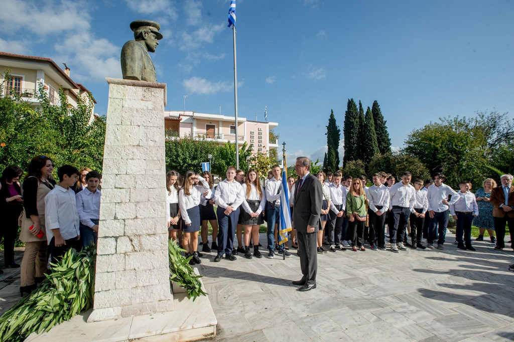 Επίκεντρο των εκδηλώσεων ήταν η έδρα του Δήμου, όπου το πρωί εψάλη η Δοξολογία στον ιερό ναό Κοιμήσεως της Θεοτόκου. Τον πανηγυρικό της ημέρας εκφώνησε η εκπαιδευτικός του Γυμνασίου κα Ιωάννα Καλού. Μετά τη Δοξολογία ακολούθησε επιμνημόσυνη δέηση και εν συνεχεία η καθιερωμένη κατάθεση στεφάνων στην προτομή του πεσόντος στην Αλβανία ταγματάρχη Πραξιτέλη Κονδύλη.