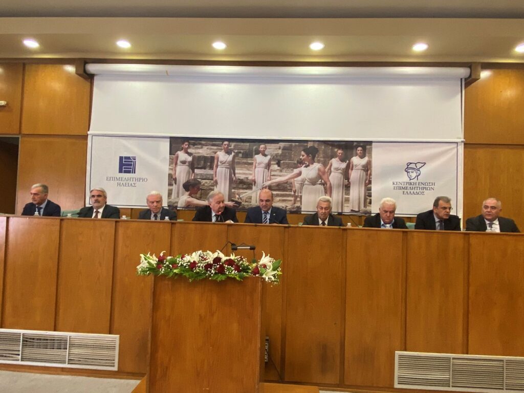 Ο πρόεδρος του Επιμελητηρίου Ηλείας, Κώστας Νικολούτσος, στην εισήγησή του με θέμα: «Ολυμπισμός και Οικονομία – Θέματα τοπικής ανάπτυξης», αναφέρθηκε στη δυναμική του τόπου, επαναφέροντας το αίτημα και μέγιστο ζητούμενο για τη μόνιμη διεξαγωγή των Ολυμπιακών Αγώνων στην Ελλάδα ή αθλητικών διοργανώσεων διεθνούς βεληνεκούς, όπως για παράδειγμα η Ολυμπιάδα των νέων. Ο Α’ αντιπρόεδρος Επιμελητηρίου Ηλείας και αντιπρόεδρος του Ινστιτούτου Ερευνών & Μελετών της ΚΕΕΕ, Κώστας Λεβέντης, αναφέρθηκε στην ανάγκη για άμεση αλλαγή του αναπτυξιακού υποδείγματος της οικονομίας της Ηλείας και της Περιφέρειας Δυτικής Ελλάδας. «Χρειάζεται να στραφούμε άμεσα στη διαμόρφωση ενός νέου παραγωγικού μοντέλου, το οποίο θα αξιοποιεί τα πλεονεκτήματα και τους πόρους της Ηλείας με έξυπνο, βιώσιμο τρόπο. Ο κατάλληλος χρόνος για να ξεκινήσει η νέα προσπάθεια είναι τώρα, διότι μέσα στα επόμενα χρόνια, η Ηλεία θα έχει τη δυνατότητα να αντλήσει πόρους από το ΠΕΠ Δυτικής Ελλάδας και των τομεακών προγραμμάτων του ΕΣΠΑ, το Ταμείο Ανάκαμψης και το Πράσινο Ταμείο, το Πρόγραμμα Αγροτικής Ανάπτυξης 2021 – 2027 και άλλα εθνικά και ευρωπαϊκά προγράμματα» σημείωσε χαρακτηριστικά ο κ. Λεβέντης.