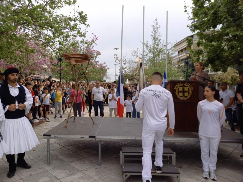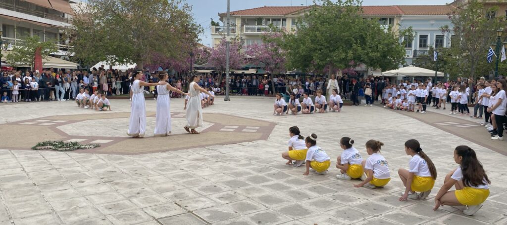 Ξεκίνησαν λίγο πριν τις 5 το απόγευμα της Τρίτη (16/04), στην κεντρική πλατεία του Πύργου, οι προγραμματισμένες εκδηλώσεις για την τελετή υποδοχής αφής της φλόγας στην Ηλειακή πρωτεύουσα.