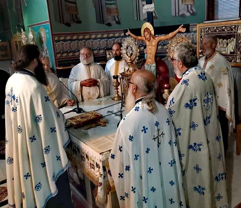 Λειτουργία μετ’ αρτοκλασιών και Θείου κηρύγματος, τέλεσε ο Πανοσιολογιότατος Αρχιμανδρίτης π. Χριστοφόρος Κωλέττης, Ιεροκήρυκας της Ιεράς Μητροπόλεώς μας και Αρχιερατικός Επίτροπος Βουπρασίας, πλαισιούμενος από χορεία Ιερέων, ο οποίος κήρυξε και το Θείο λόγο.