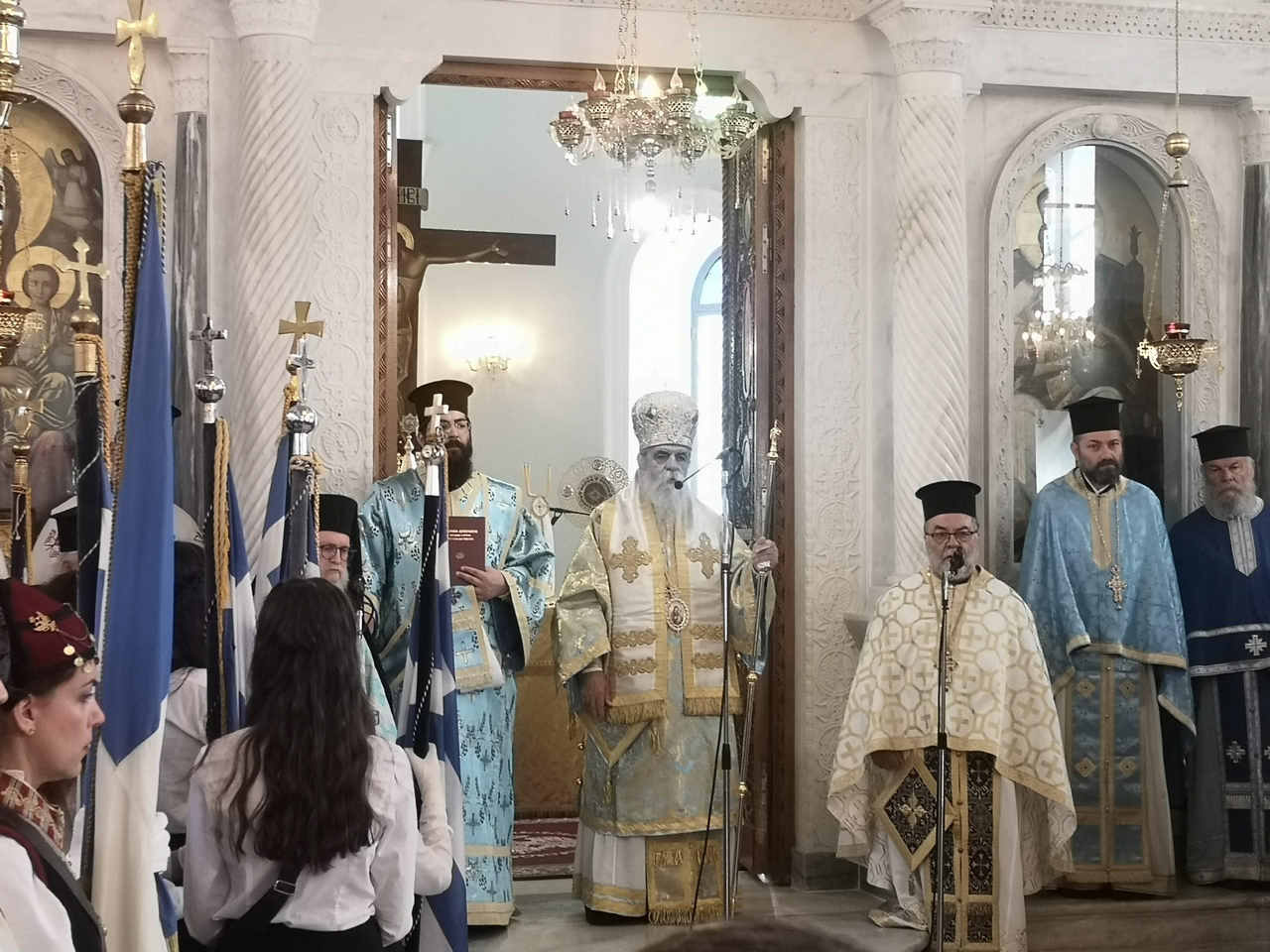 Νωρίτερα, στον Ιερό Μητροπολιτικό Ναό του Αγίου Νικολάου τελέστηκε η Αρχιερατική Θεία Λειτουργία χοροστατούντος του Μητροπολίτη Ηλείας και Ωλένης κου Αθανασίου.
