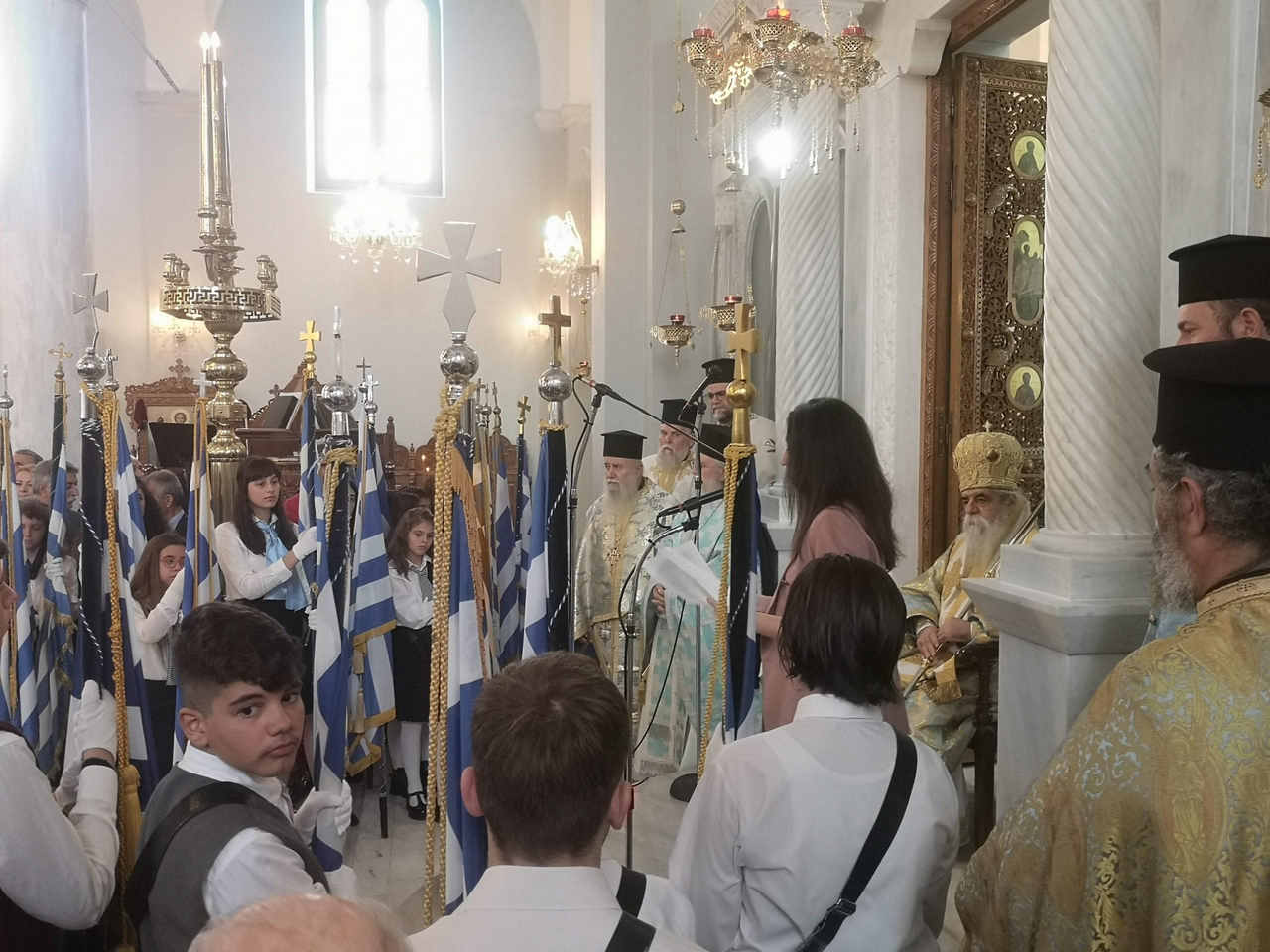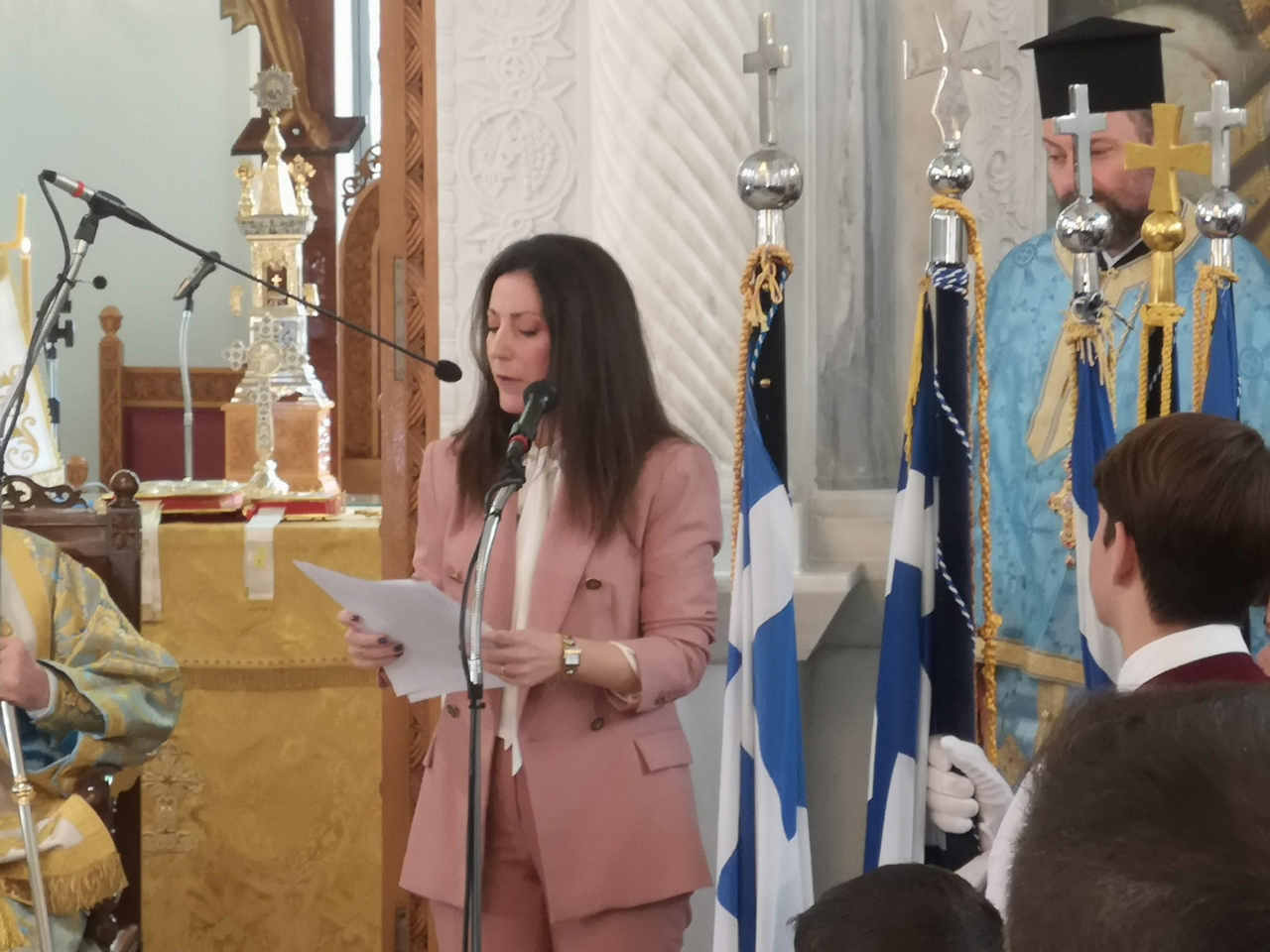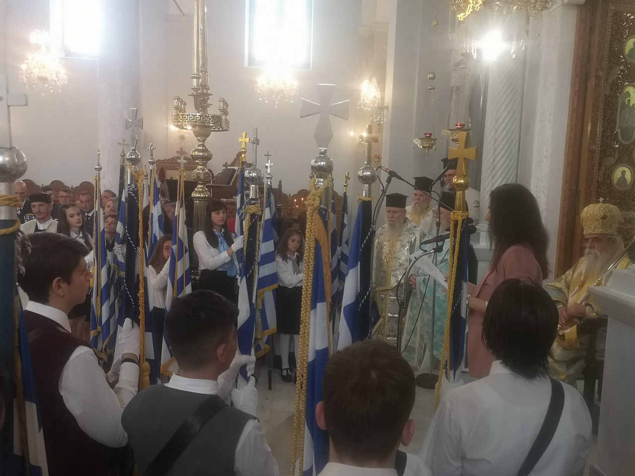 Ο πανηγυρικός της ημέρας, εντός του Ιερού Ναού του Αγίου Νικολάου, εκφωνήθηκε από τη Διευθύντρια του 3ου Γ.Ε.Λ. Πύργου, κα Ιουλία Χάρμπαλη