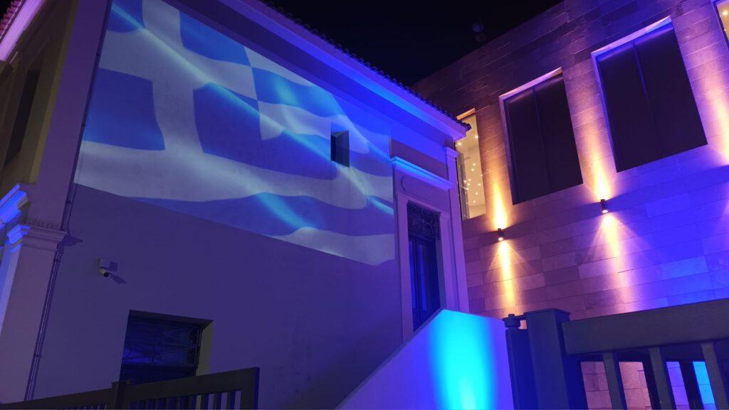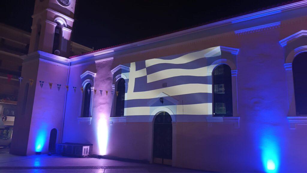Τα δυο κτίρια «ντύθηκαν» (μέσω mapping)… επετειακά από το Δήμο Ήλιδας με αφορμή την 25η Μαρτίου 1821